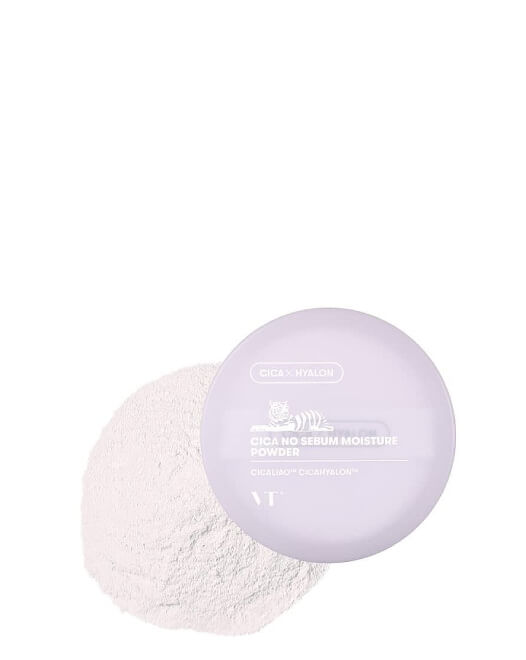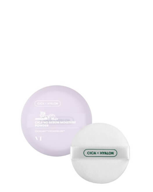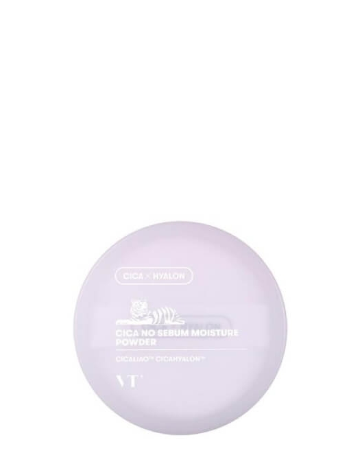 Pudra hidratantă pentru față VT COSMETICS Cica No Sebum Moisture Powder cu nuanță violet deschis neutralizează tonul galben al pielii și face ca imperfecțiunile de culoare (pigmentarea, pistrui) să fie mai puțin vizibile, controlează secreția de sebum, matifiază, fixează machiajul și îi prelungește durabilitatea. Formula unică creează o senzație de răcoare la aplicare și oferă un aspect proaspăt. Formulele brevetate CICALIAO™ și CICAHYALON™ calmează pielea iritată, întăresc bariera protectoare care promovează reținerea umidității și protejează pielea de deshidratare.