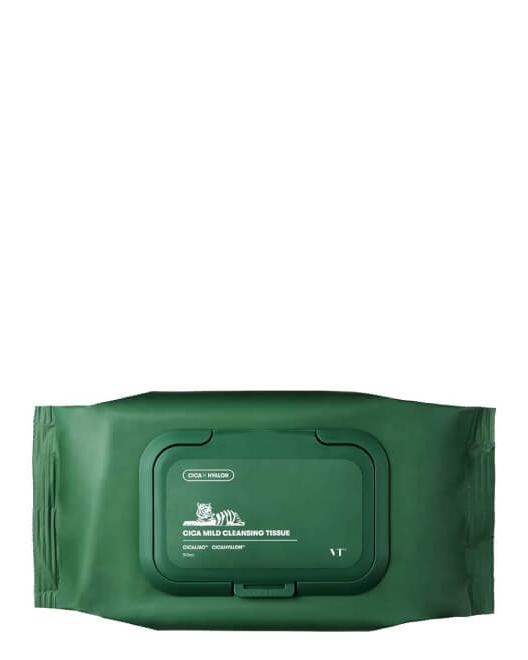VT COSMETICS Cica Mild Cleansing Tissue sunt servețele demachiante, care îndepărtează ușor murdăria și machiajul. Acest format al produsului este comod în special în călătoriile lungi sau când este lipsă de apă. Șervețelele exfoliază ușor stratul cornos al pielii, reînnoiesc și hidratează pielea. Au un efect calmant puternic, ajută la eliminarea roșeții și a iritațiilor. Produsul are un pH mai scăzut pentru a menține un echilibru sănătos al pielii.