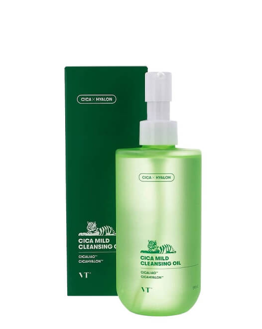 Ulei hidrofil VT COSMETICS Cica Mild Cleansing Oil curăță delicat pielea, dizolvă machiajul și absoarbe impuritățile din pori, prevenind înfundarea acestora și apariția punctelor negre. Acesta este un produs conceput pentru curățarea în profunzime a pielii, care constă din uleiuri și emulgători, vitamine și alte substanțe benefice. Datorită texturii sale uleioase, uleiul hidrofil pătrunde în pori și dizolvă conținutul acestora, eliminând astfel mediul pentru dezvoltarea bacteriilor patogene și, de asemenea, dizolvă texturi dense precum crema SPF, cremele BB și CC și chiar și cel mai rezistent machiaj. Ca urmare a utilizării uleiului hidrofil, obțineți o piele perfect curățată.